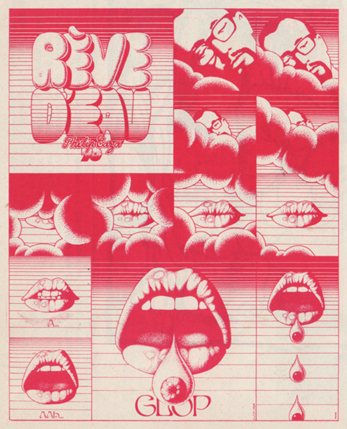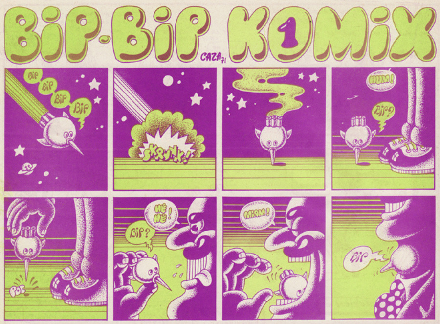 Caza writes, "I was a great fan of Moscoso, Crumb, Griffin, and some other US underground comix that I could find at one bookseller in Paris."