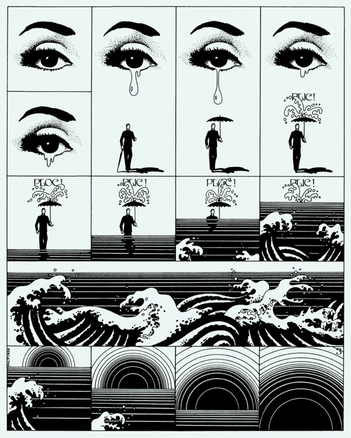 These next four images are from "Rêve d'eau" ("Water dream"), published in Actuel # 6 (March '71). Actuel was an underground magazine created in '71 in France by Jean-François Bizot.